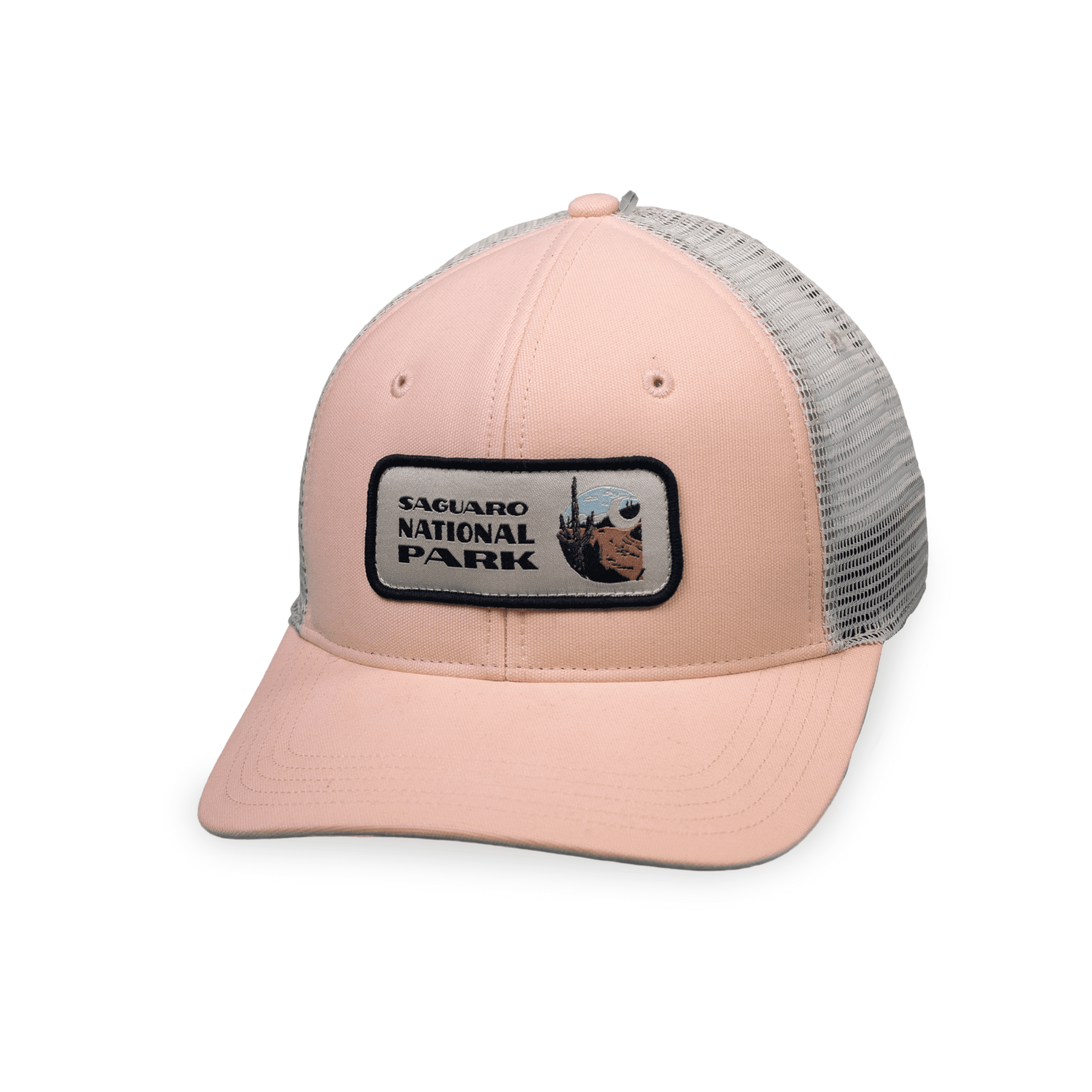La gorra  Saguaro National Park de carthart destaca por su diseño inspirado en la naturaleza y la estética outdoor con un toque street. Su combinación de panel frontal en tono rosa suave y malla trasera blanca ofrece un look fresco, moderno y funcional, ideal para climas cálidos y uso diario.