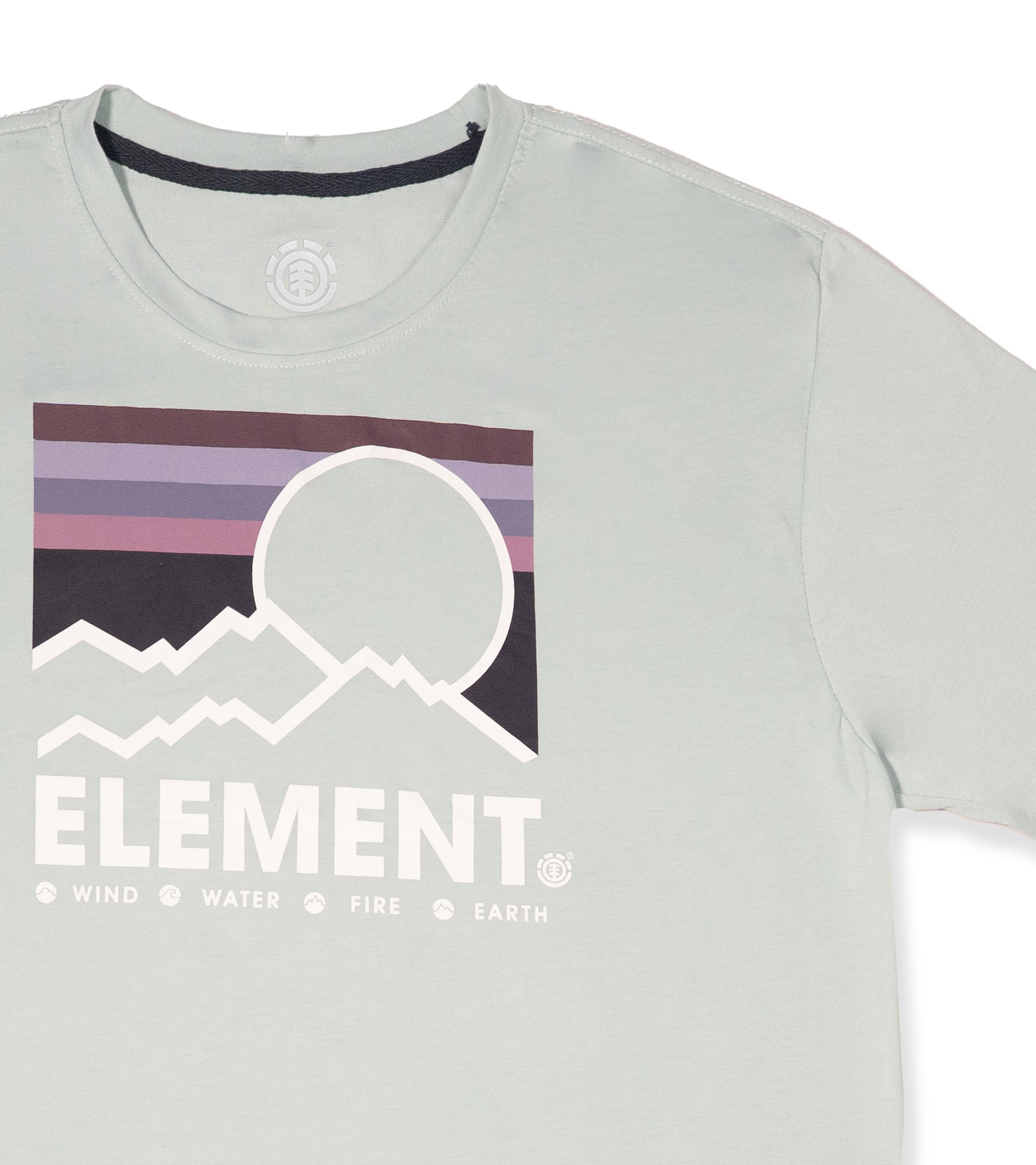 Luce el equilibrio perfecto entre estilo urbano y conexión con la naturaleza con esta camiseta original de Element. Diseñada para quienes viven con actitud, su estampado frontal muestra un paisaje montañoso al atardecer con los cuatro elementos: viento, agua, fuego y tierra — íconos representativos de la marca.
