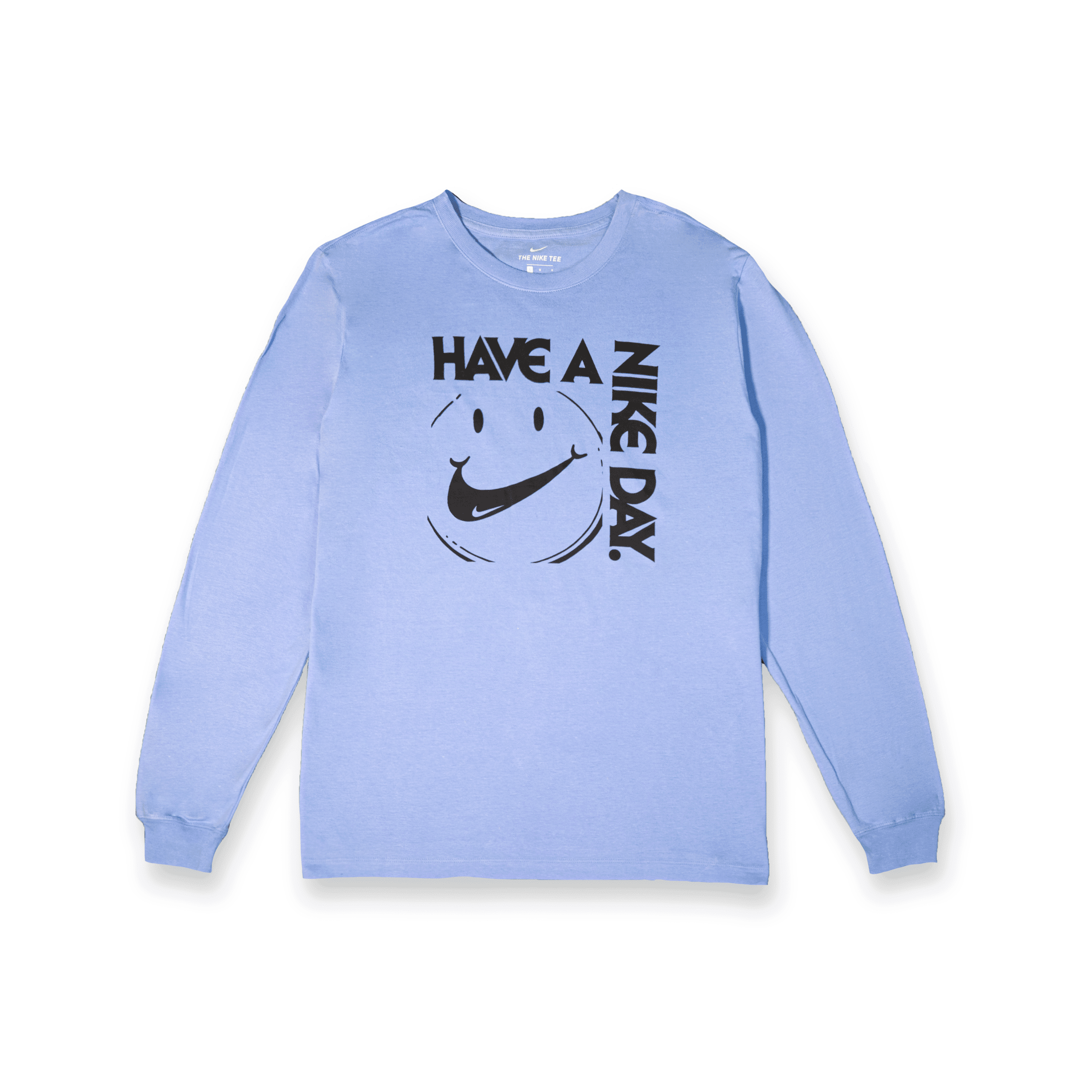La camiseta Nike de manga larga “Have a Nike Day” en color azul claro combina estilo, comodidad y el icónico toque divertido de la marca. Fabricada con algodón suave y resistente, esta prenda ofrece una sensación ligera y confortable ideal para uso diario, entrenamientos suaves o looks urbanos relajados.