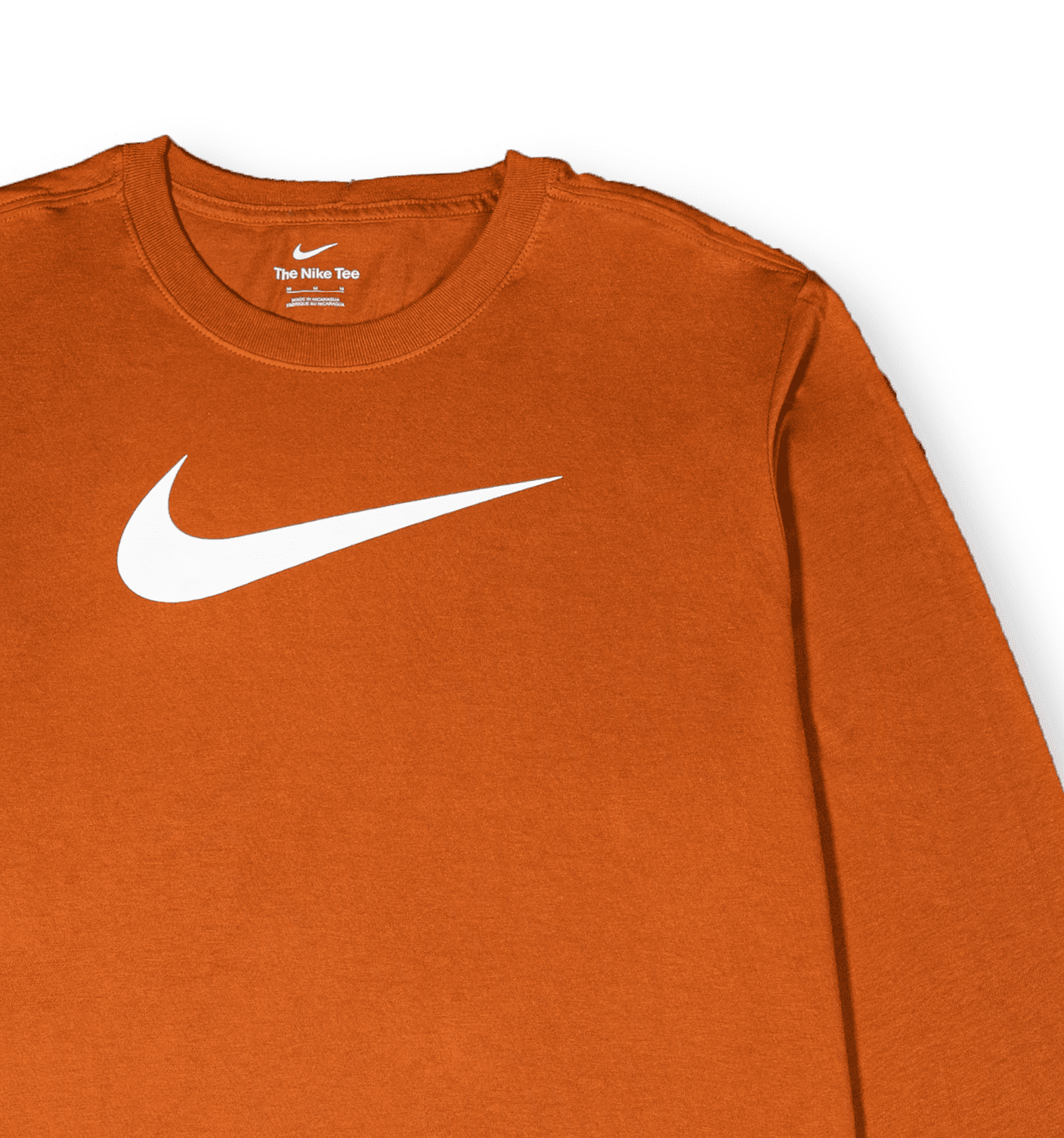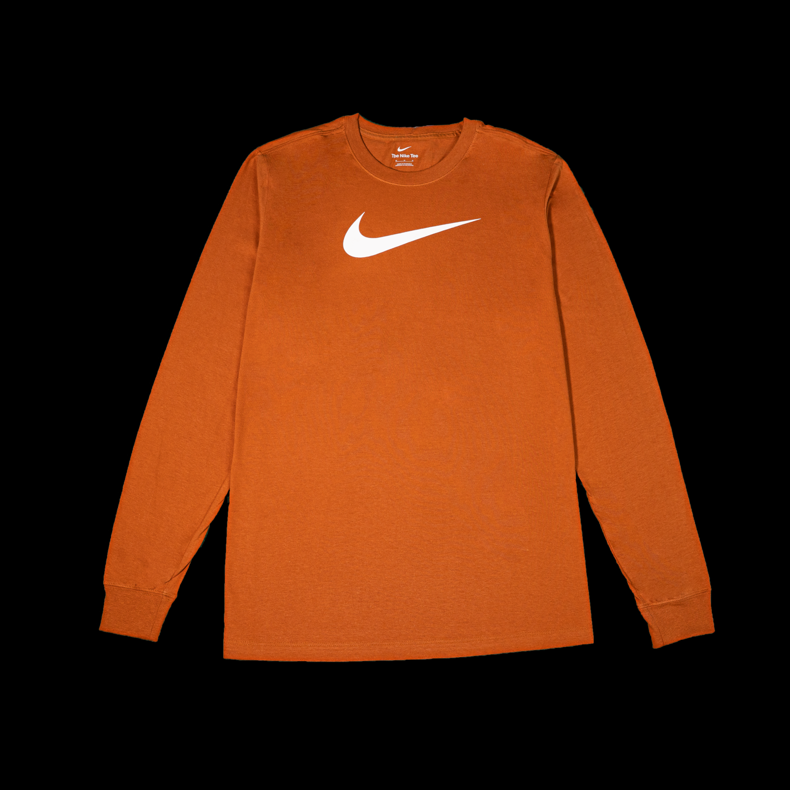 Eleva tu estilo deportivo con esta camiseta manga larga Nike, diseñada para ofrecer comodidad, durabilidad y un look clásico que nunca pasa de moda. Elaborada en un tono naranja quemado vibrante, destaca por el icónico Swoosh blancoestampado en el pecho, símbolo universal de autenticidad y rendimiento deportivo.