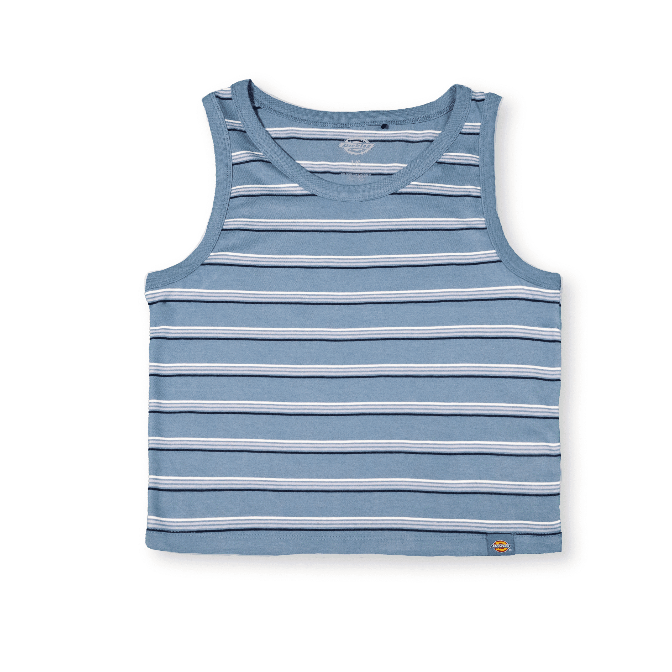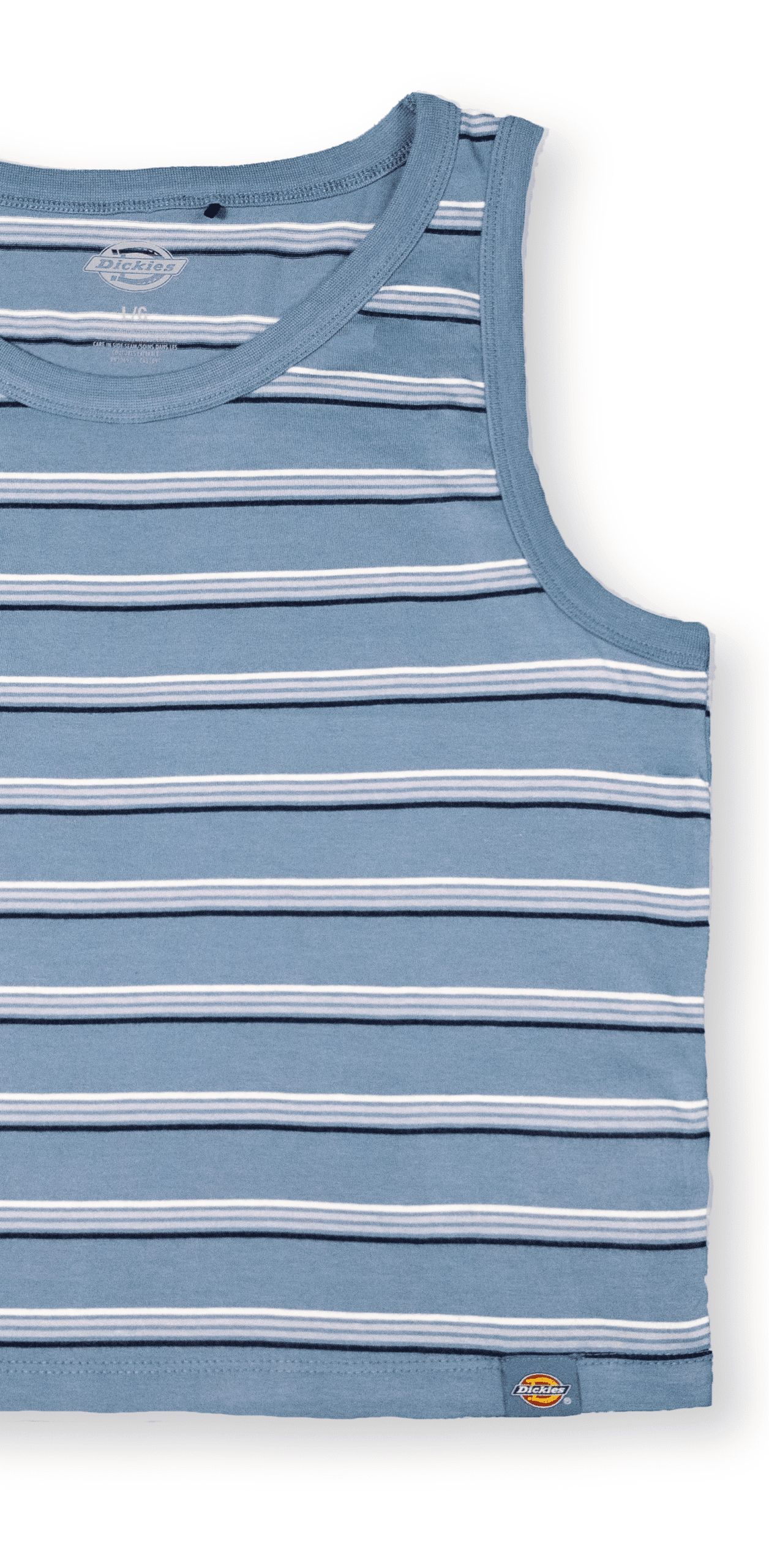Camiseta sin mangas estilo “tank top” con diseño clásico de rayas horizontales en tonos azules. Ideal para un look casual y fresco. Confeccionada en algodón suave, ofrece comodidad y libertad de movimiento. Incluye pequeño logo bordado de Dickies en la parte inferior del frente.